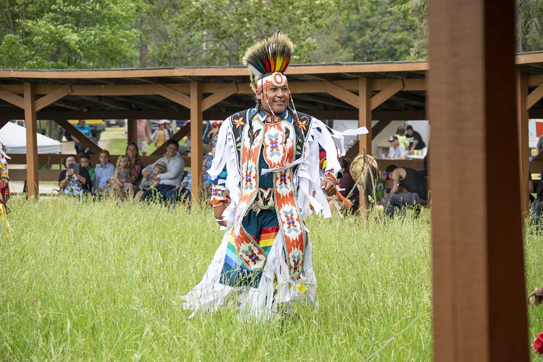 Saturday’s grand entry took place right on time at 1 pm. A grass dance featuring host drum Red Man took place just before, with grass dancers beginning to mat down the high foliage within the arbour and offering a blessing for the grounds.