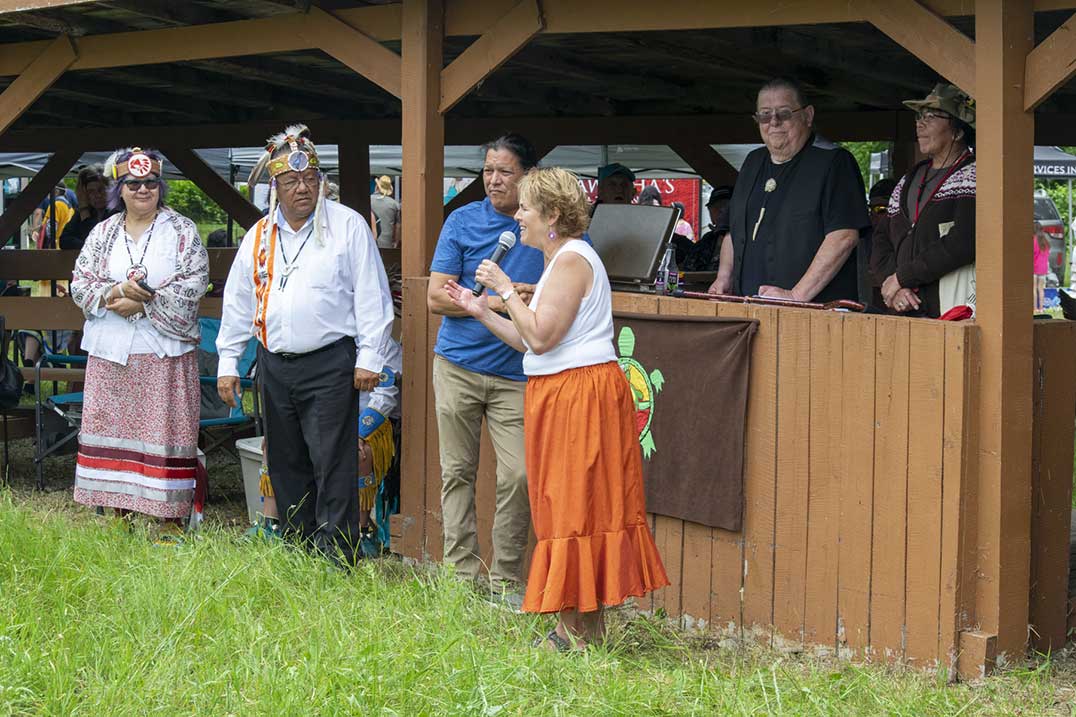 Sheguiandah First Nation Ogimaa Andrew Aguonie stressed the importance of taking action against climate change and pollution in his opening remarks. Ontario Regional Chief RoseAnne Archibald thanked Sheguiandah and its leaders for welcoming everyone to their lands for the celebration.