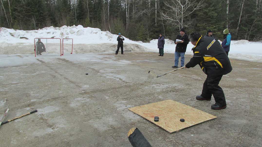Murray Still, of the UCCMM Anishinabek Police Services, was on hand with his radar gun to clock all the participants slap shots in the radar slap shot contest. The winner overall was Nick Bush.