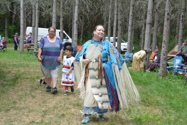 Female head dancer Crystal Madahbee of Aundeck Omni Kaning.