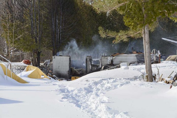 While engaging the fire, the firefighters spotted a number of footprints in the snow around the house. “We determined that there were fresh footprints into the home,” said Mr. Addison. “We found it to be suspicious so we contacted the (Ontario Provincial Police).”