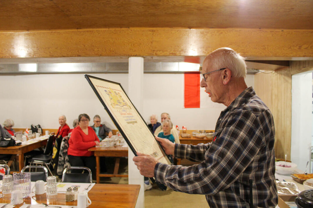 Doug Wismer reads the names of all veterans from Robinson Township who have all served in WWI, WWII and other conflicts for Canada. Photo by Tom Sasvari