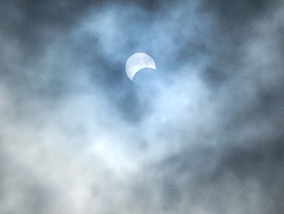 It was now 3 in the afternoon. The eclipse was happening, but the heavy cloud cover completely hid the sun. We laid on the grass and waited – and it was worth the wait.