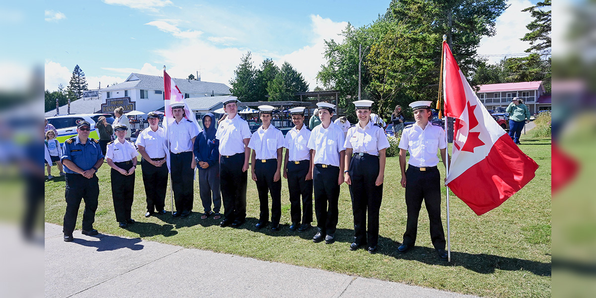 The cast and crew of the MS Chi-Cheemaun ferry pose for a photo following the ship’s arrival at the celebrations in South Baymouth.Let them eat cake! A celebratory dessert was ready and waiting for hungry celebrants.The Manitoulin Sea Cadet Corps were on hand for the parade and posed for a group shot.Car shows are always a great draw and the turnout of vintage automobiles was strong despite the threat of inclement weather.What’s a celebration without some fine art face painting? Georgia and Sawyer were pretty serious about the whole process.Is that former longtime reeve Gary Brown poking his head out of that fancy black car? This float in the South Baymouth parade was a great tribute to the MS Chi-Cheemaun ferry which was celebrating its 50th anniversary of service to Manitoulin.These happy float riders were ready to raise a toast to the venerable old lady as she came into port.Ontario NDP leader Marit Stiles took the opportunity to hand out a certifcate commemorating the 50th aniversary.