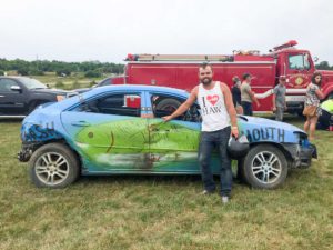 The finals saw Mr. Trimmer, Mr. MacKenzie and Mr. Stapleton enter the ring to see who won the cash prize and bragging rights of winning one of Manitoulin’s most beloved events. In the end it was down to Mr. Trimmer and Mr. MacKenzie, with the latter willing his car to move at the bitter end. After one final hit, Manitowaning’s Mr. Trimmer won the derby, his first ever attempt in the smash-up.