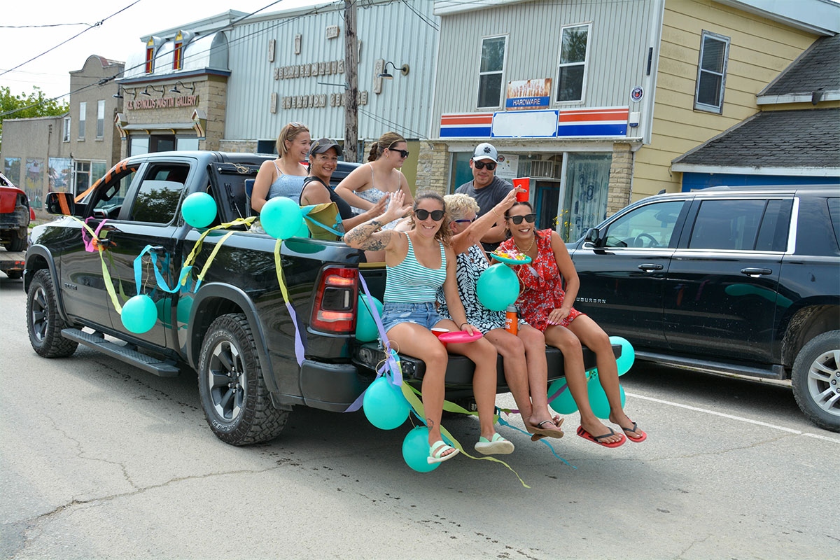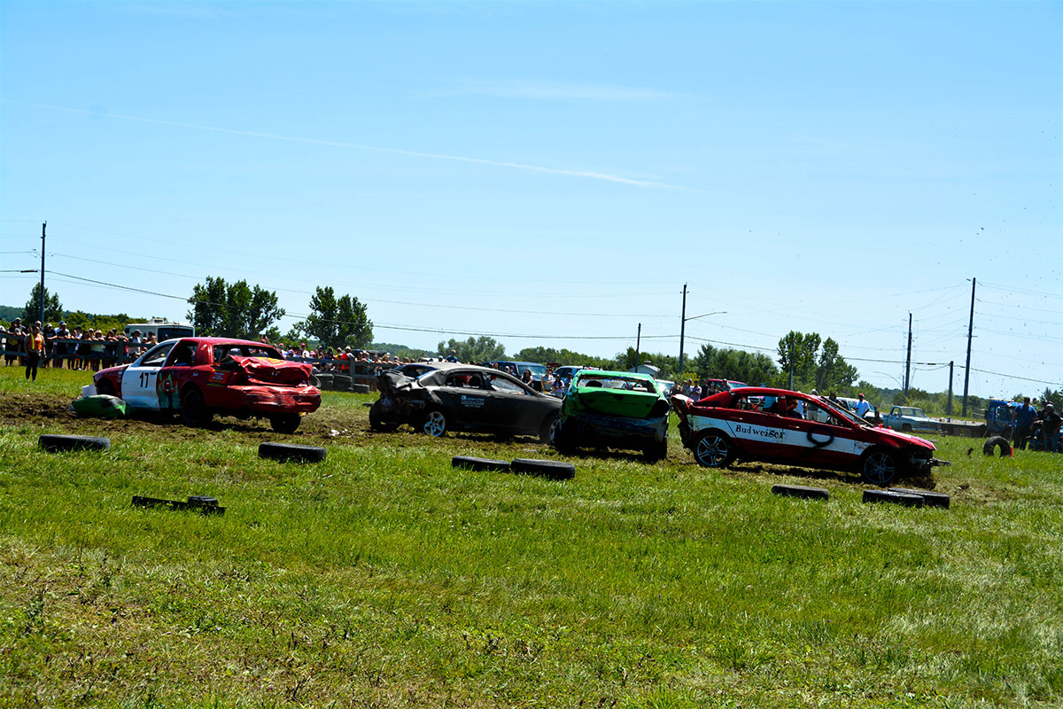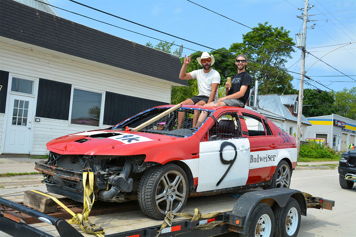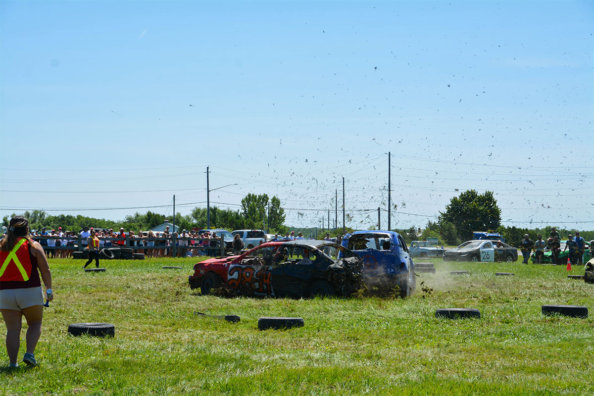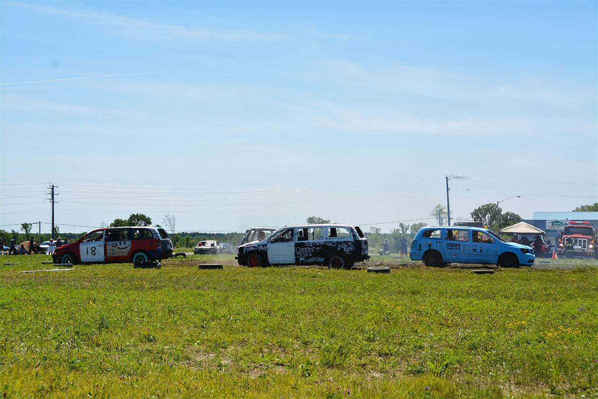 A truck pull was added to the roster of Summerfest events this year. photos by Alicia McCutcheonNicole Turner, the sole female driver in the smash-up derby, waves to the crowd.Bradley Stapleton, centre, driving on behalf of E. Corbiere and Sons, won the smash-up derby. He is flanked by Lion President Lisa Hallaert, left, and pit crew Dawson Campbell.The Lions Pavilion provided live entertainment all Summerfest long.New this year to the smash-up derby was a minivan class.Turf was flying at the annual smash-up derby.The crew of No. 9 show off their derby car in the Summerfest parade.Summerfesters wave to the crowd during the Saturday morning parade.Action gets underway at the Jim Case Memorial ball tournament. The team Ice Cold Pitchers won the tournament. Amaze N Fun provided bouncy fun for the littles in the kids’ zone. The second heat of the smash-up derby was one for the ages.