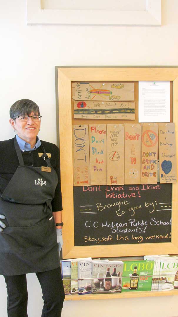 “The students made 150 bags that we are giving to all customers to put their liquor purchases in with the messages on them from the students reminding them to not drink and drive,” said Sherri Lee Gagnon, manager of the Gore Bay LCBO store.