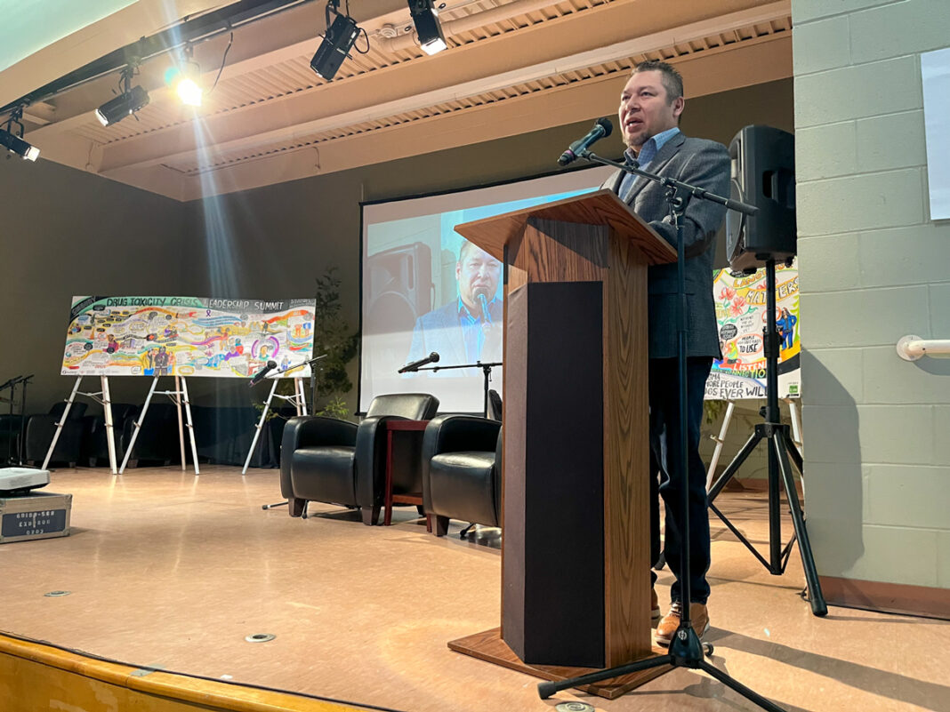 Greater Sudbury Mayor Paul Lefebvre offers closing commentary at the Summit on Toxic Drugs.