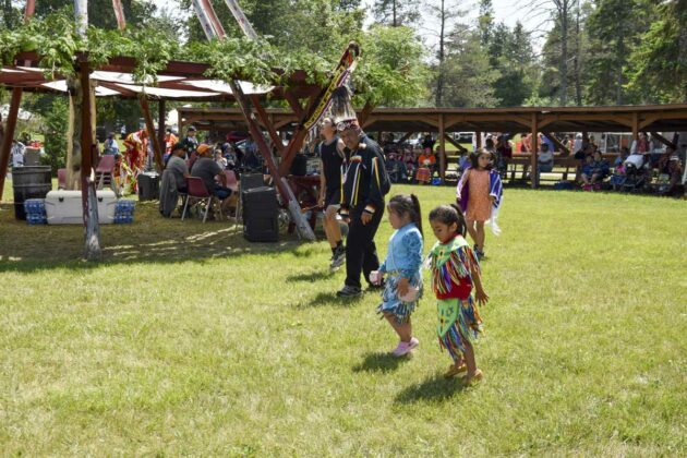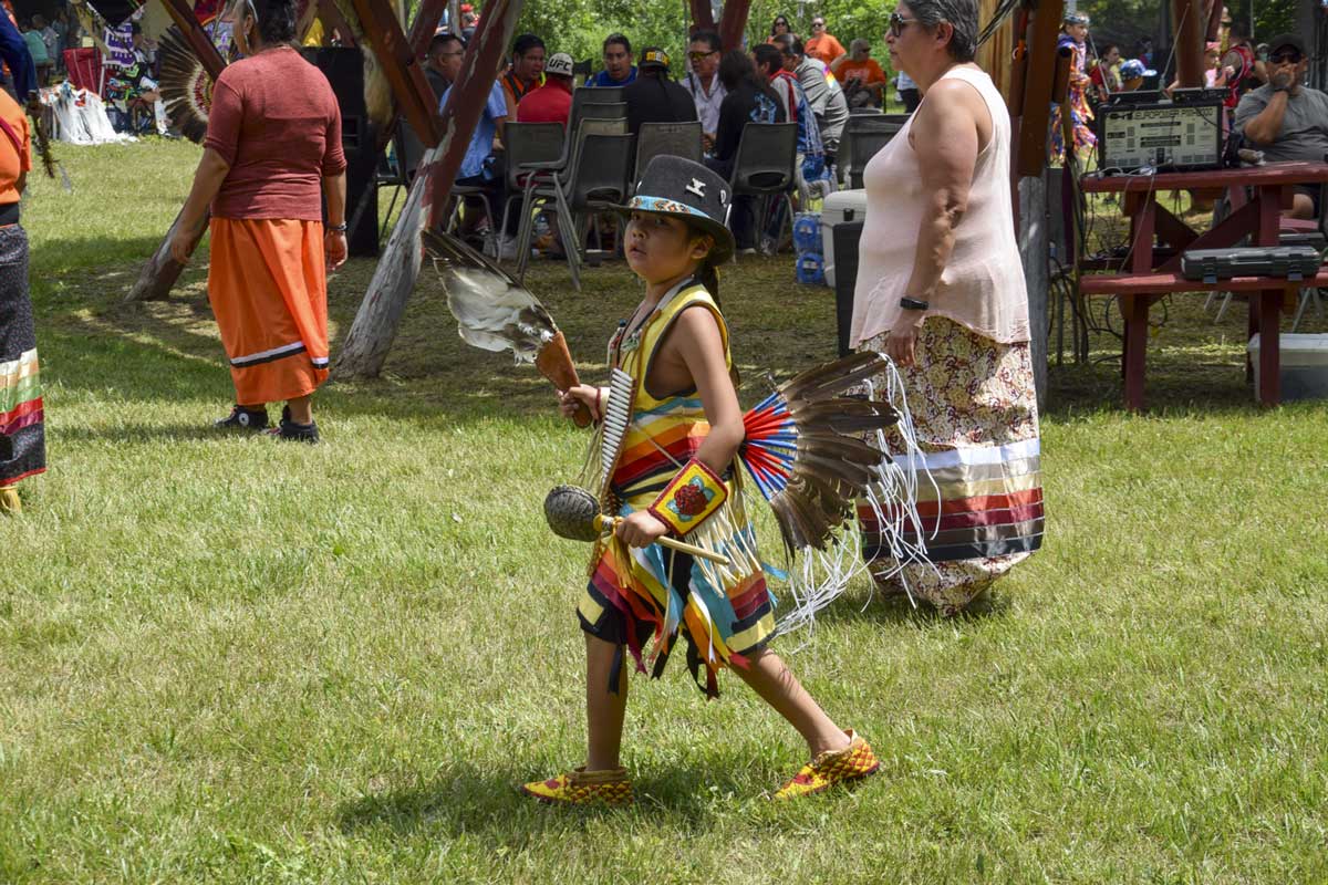 The laughter of young children racing around the powwow grounds was matched only by the dedication those same youth showed while engaged in their respective dance styles. Jingle dress dancers, shawl dancer, traditional men’s regalia and grass dancers were all to be found in miniature form throughout the weekend.