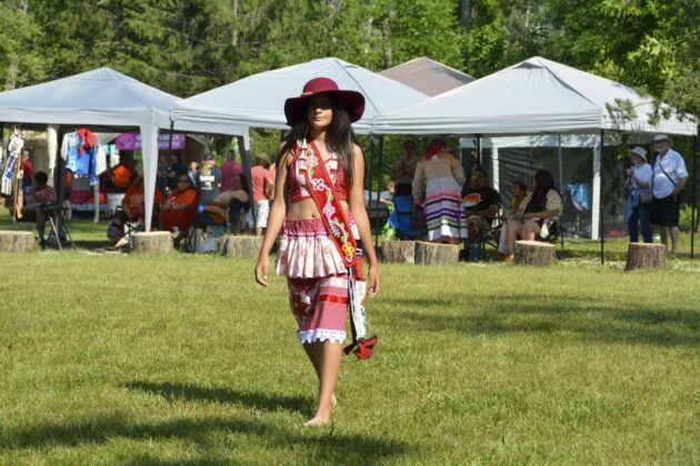 While vendors were limited to Anishinaabe, that did nothing to limit numbers as there were plenty of both artisan and food offerings on hand. “Sheguiandah band members do not pay a vendor fee, just a donation to give away,” said Frazer Whiteduck. “This is requested by the Brandy Waaba-Zheezheeb baa, as she was a dedicated powwow vendor as long as this powwow was going on and she believed the Sheguiandah powwow should support its economic warriors and the entrepreneurial spirit.”