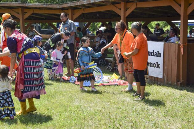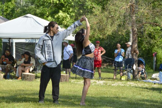 Theme for this year’s jiingtamok was “Honouring Past, Present and Future.” Head dancers on both days were Jason and Pam Solomon, while head elders were Jerry and Linda Kaboni. Master of ceremonies Greg ‘The Goose’ Sutherland was ably assisted by knowledgekeeper Craig Fox.