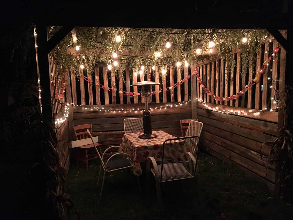 MINDEMOYA – Early October on Manitoulin Island brings longer nights, crisp fall air and a feeling of hesitation as the hot summer fades into an icy winter. Against the growing dim of the evening, a Duke Street yard in Mindemoya comes to life with the sounds of laughter, conversation and a family breaking bread in a wooden booth as its warm incandescent glow spills out upon the fallen leaves in their yard.