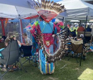 Jackson Jacobs displays his unique style at the Wiikwemkoong Cultural Festival. photo by Bonnie Kogos