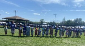 The last intertribal of the night saw a host of Anishinabe take part. photo by Ogimaa Rachel Manitowabi