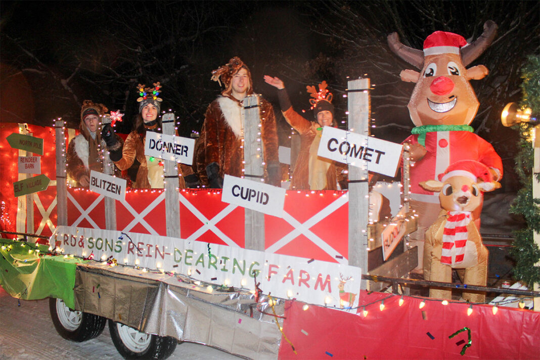 THE REINDEER CAME FIRST—The ‘Rein-Dearing Farm’ float by Rob Dearing and Sons took home the top prize for best float in the Gore Bay Santa Claus parade. The top float spot on the podium won bragging rights. This year’s Gore Bay parade had a huge number of floats and a great crowd despite the challenging weather.