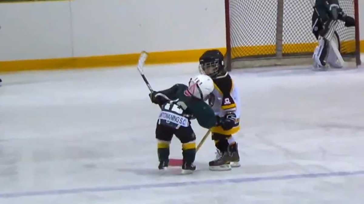 The Cheerios “Good Goes Around” anthem shows a short clip of a 2018 video in which a member of the Gore Bay tykes hockey team stops skating in the game and helps up a member of the opposing Manitowaning hockey team.