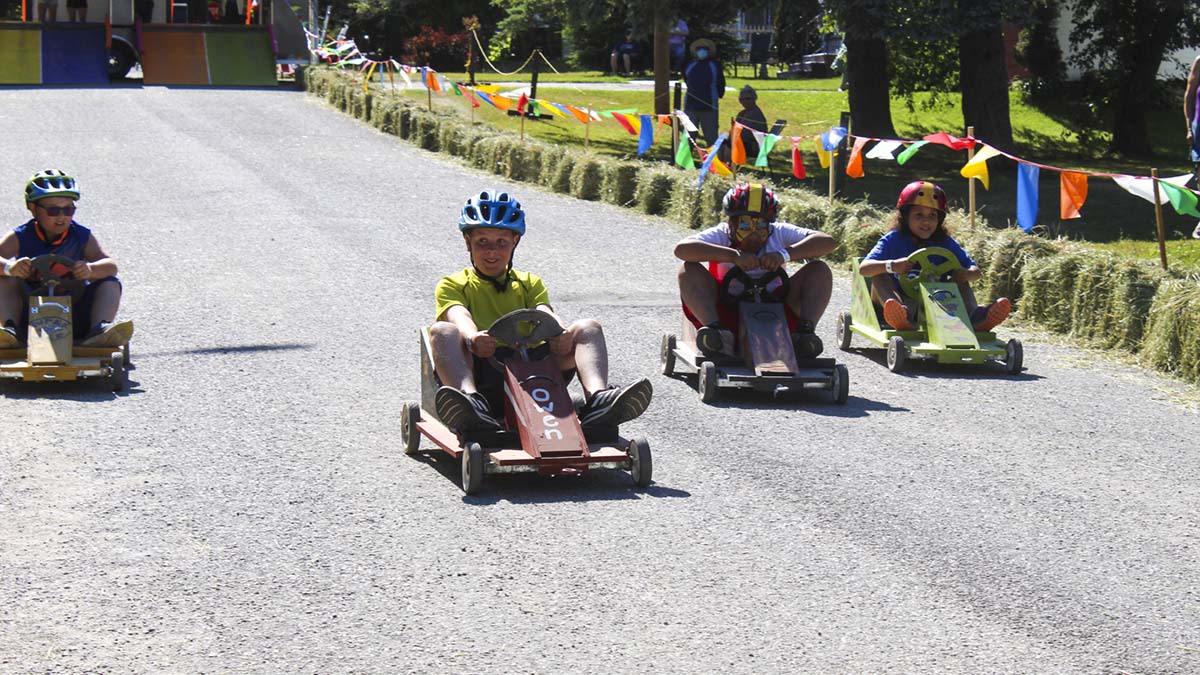 About 20 youngsters took part in the soap box derby, held on Duke Street in Mindemoya. After many preliminary heats and qualifying races, Spencer Johnston of Providence Bay won the final championship race which included three other competitors.