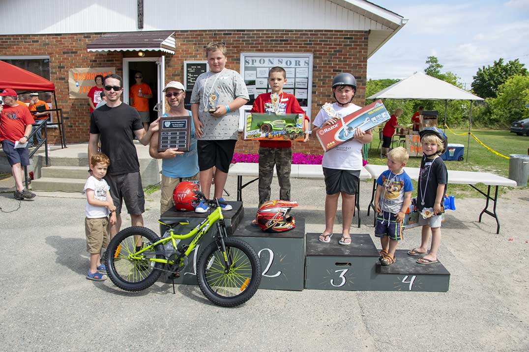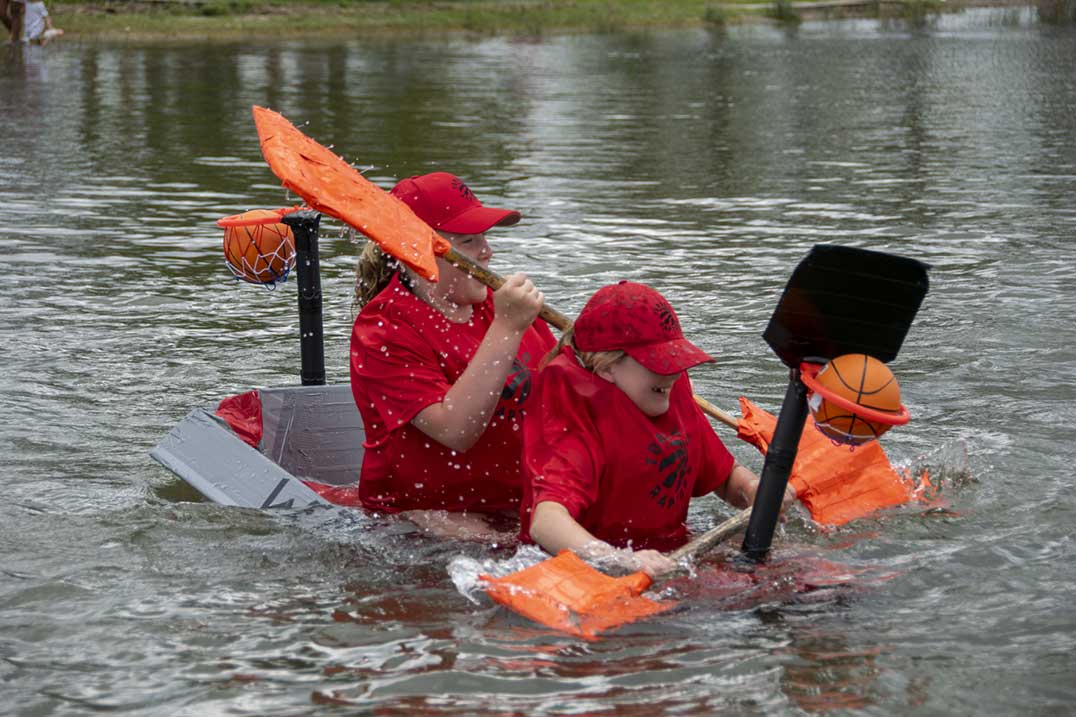 That was far from the only competition for Haw glory this weekend. On Saturday afternoon, the ever-popular cardboard boat races saw 10 teams out and paddling their homemade creations to the finish line. The teams of Sydney Bradley/Makayla Dunn and Nate/Lily Zimmerman took first place in the 8-11 age division. Isla and Katelyn Cholmondeley took first in the age 12-15 division and Assiginack Childcare, captained by Kirsten Bowerman and Lindsey Tarr, won the business division.