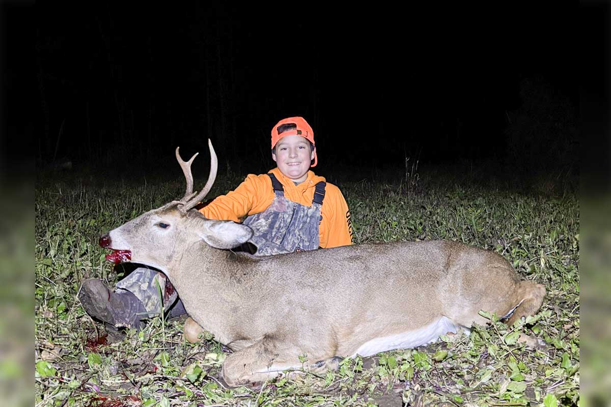 Then on November 21, Mr. McPhee reported, “My son Griffen McPhee just shot his first ever deer. He recently turned 12 years old. He and his twin sister did their hunting and firearms courses right away. He wanted you to know. A nice buck and a perfect 60 yard shot. He is very excited. It was taken in (Wildlife Management Unit) 43b near Evansville. It weighed 161 pounds.”