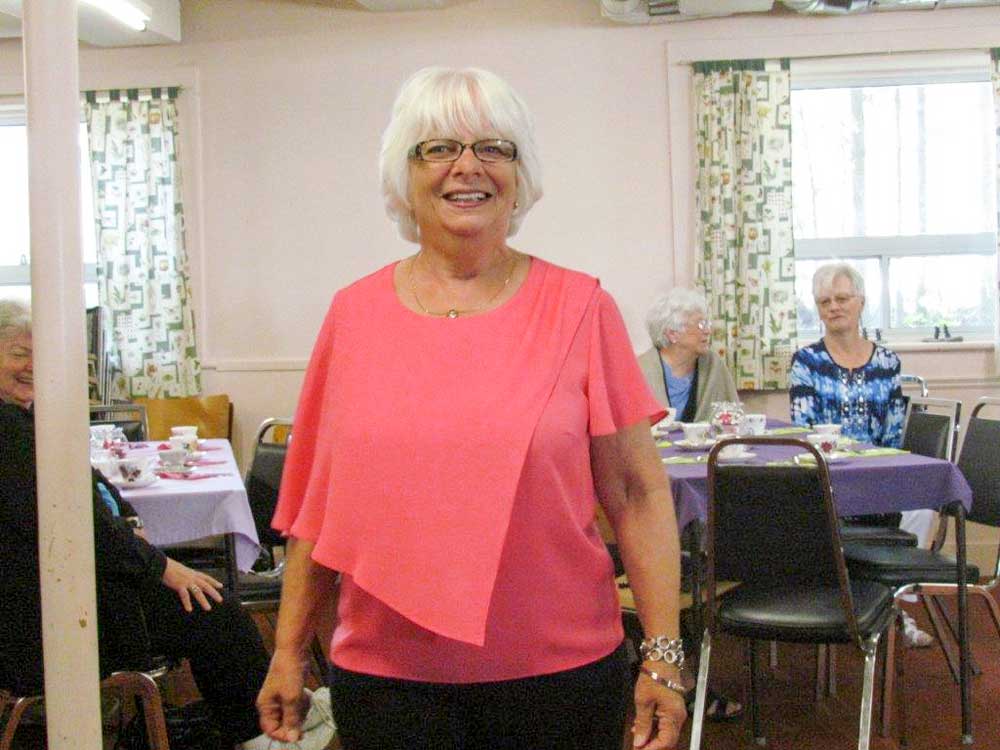 The attire is courtesy of Cindy Wright, owner of Cindy’s Fashions in Mindemoya. The lower part of the church is always full for the fashion show, and attendees enjoy tea or coffee and fabulous desserts and have a chance to win one of several prizes donated by Ms. Wright.