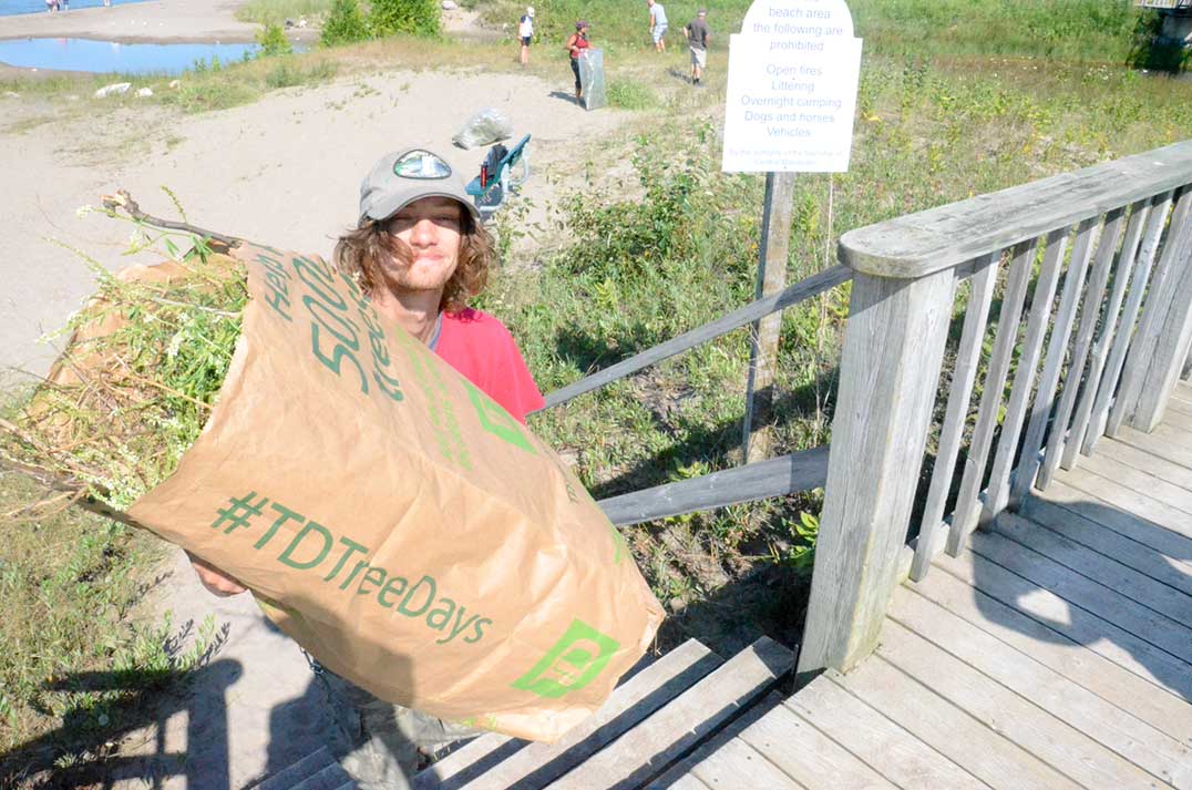 A troop of Ontario Parks rangers arrived at the scene to assist in the efforts, providing a significant number of younger hands to assist the generally older group of volunteers who were clearing the beach of sweet clover.