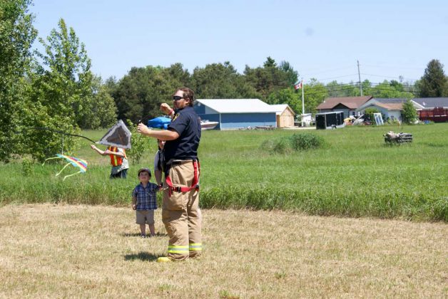 The kites were the highlight of the day, of course. Parents, grandparents and firefighter volunteers helped younger children get their kites in flight. There were contests for best homemade kite, most colourful kite, most unique kite and highest flyer. There was even a prize for best corporate or group kite. Kites were flying in the front and back fields and even in the parking area.