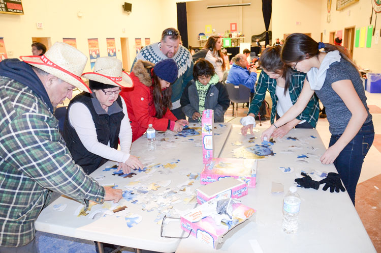 Ice sculpture contestants took advantage of the fine weather weaving creativity and the plentiful snow into masterpieces displayed on lawns across the community. First prize went to Wasi Lightning for her inspired cat and fiddling mouse ‘Fiddle Me Whiskers’. Second place went to Julie Wilder’s massive dinosaur creation while third place was fished up by the simple but quirky fishing Inuktuk of Olivia Pelletier and Mabel McGregor. Special mention to the skyline efforts of Greg Sutherland’s family and the slightly gruesome harvested deer of Dan Andrews.