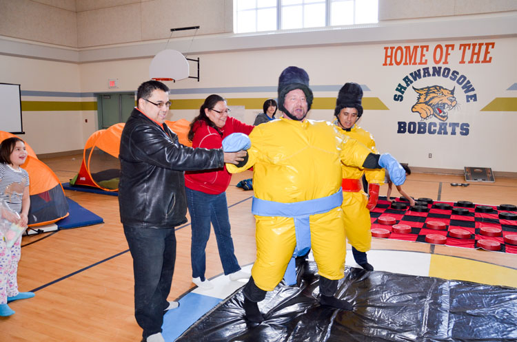 Perhaps the biggest laughs of the weekend were the responses from those people watching the battle of the politicians, as Chief Shining Turtle took on Algoma-Manitoulin MPP Mike Mantha in a sumo wrestling event that both puffing contestants agreed to call a draw after two throws.