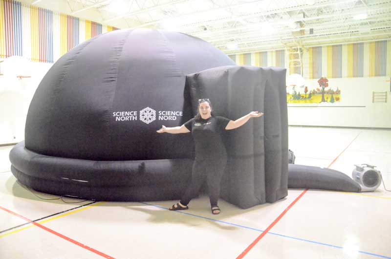 Some of the action on the weekend took place outside the powwow grounds, with Science North bringing their mobile planetarium to Pontiac School.