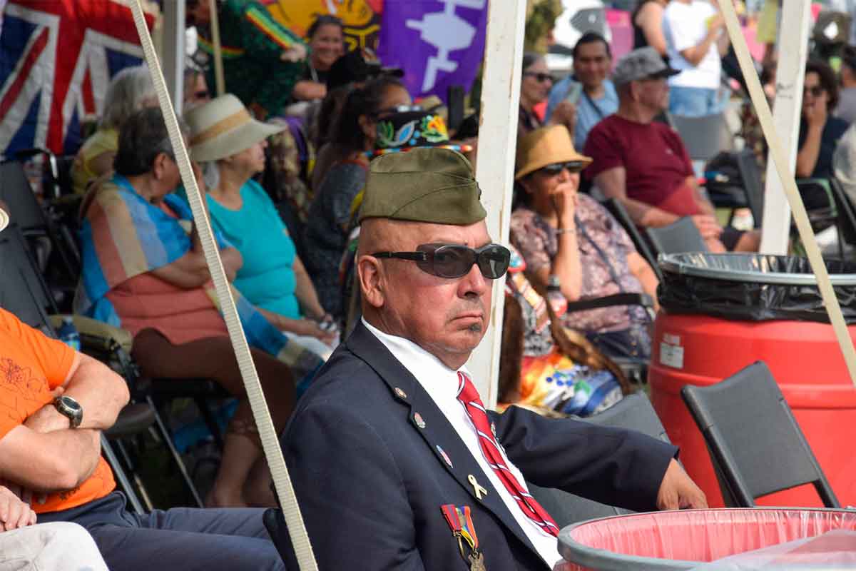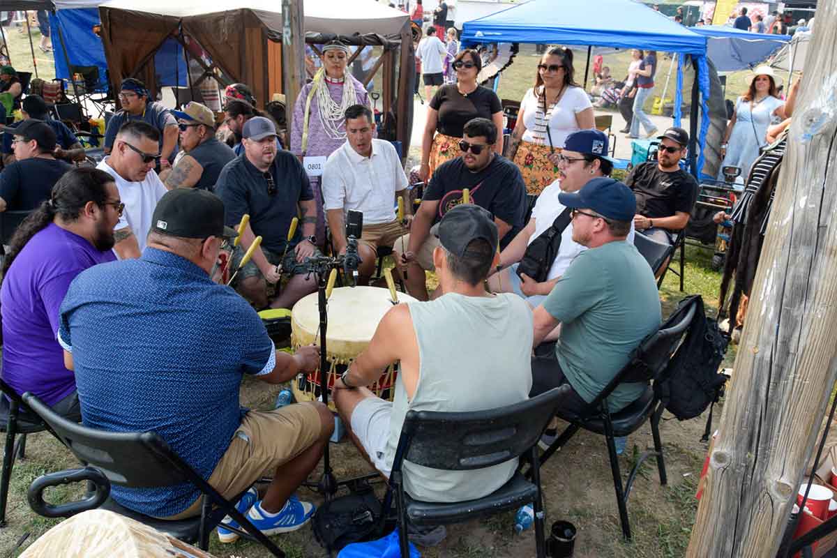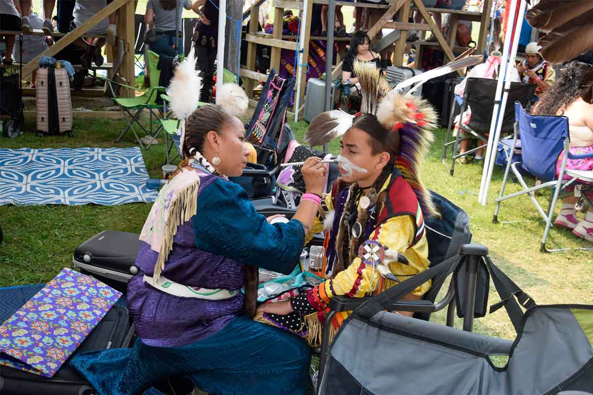 Six Nations smoke dancers check on the baby while taking a break from their performances.Members of Grey Wolf, a Canadian Army development program for Indigenous Peoples living in Ontario kick back and relax.This tiny tot shawl dancer had all the moves down pat.Stay hydrated. Wiikwemkoong Cultural Festival organizers made sure there was lots water on hand.When it comes to merch, there is no better place to pick up some fine Indigenous There is plenty of preparation needed to be ready for a competition powwow.Artist and entreprenuer Nick Cywink added a public service with his ATM machine. Many vendors were happy to see it there.Frank Odjig and his daughter stop to say hello. The August long weekend is a great opportunity for families to get together. photos by Michael ErskineHead veteran is serious business and Wayne F. Pitawanakwat was on the job.Visitors from the Haudenosaunee, or “people of the longhouse,” commonly referred to as Iroquois perform a peaceful “war” dance. These days the interactions with the Anishinabe southern neighbours are peaceful.A fancy shawl dancer competes in the Wiikwemkoong Cultural Festival. For more powwow pictures, see Page 21. photo by Michael ErskineFormer Ogimaa Duke Peltier serves as emcee at the Wiikwemkoong Cultural Festival.Drum groups are the very heart and soul of the powwow and these folks were working hard. As has become tradition, female singers stand behind the men to add their voices to the beat.Dr. Dawn Lavell Harvard was auditioning for her new documentary ‘Until Our Hearts are on the Ground.’Female smoke dancers perform during a special.
