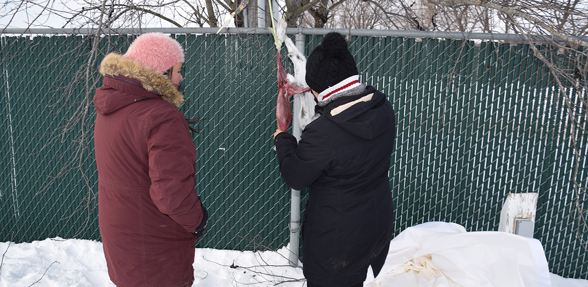 Wiiky Culture Days visitors inspect a recent catch hanging on a tree