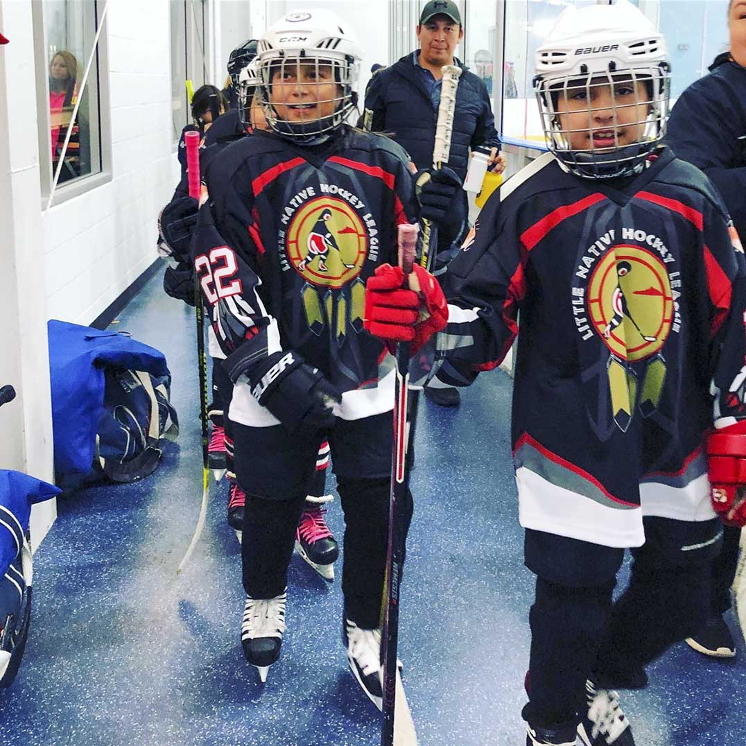 Ms. Bull reached out to Wiikwemkoong Ogimaa Duke Peltier, who quickly put her in touch with Youth Centre manager Lawrence Enosse. Together, Leaside and Wiikwemkoong were able to organize land-based activities, an equipment giveaway, 1.5 hours of on-ice instruction by Leaside for girls hockey and an exhibition game against the Manitoulin Panthers.