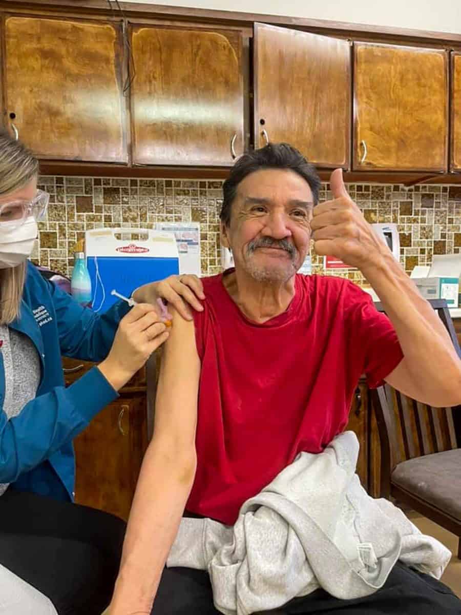 “It was a little painful at first, but I am well satisfied. I was in the army and you got lots of shots there, so I am used to that,” he laughed. “It was nice that they put up a little video of us getting our shots.”
