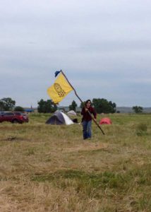 Ezra actually played a large role in the proceedings, noted his mother. “He carried the flag,” she said, explaining that each day there is a procession up into the Dakota Hills and ceremonies in which the newly arriving flags are planted along the fence line in an act of solidarity. “He marched with the flag, he stood there throughout the entire ceremony holding the flag aloft,” she said proudly.