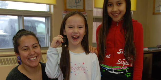 WIKWEMIKONG—Six-year-old Natalia Pitawanakwat was all smiles as she approached the seat of honour before an assembly of her peers late last month at the Wasse Abin Junior School in Wikwemikong.