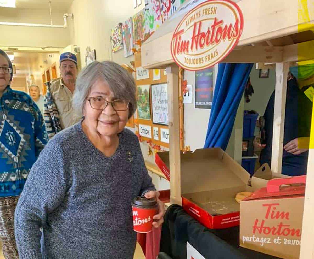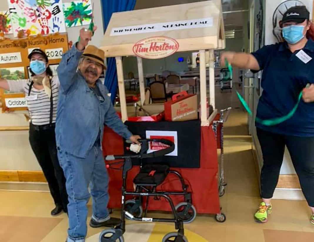WIIKWEMKOONG – Wikwemikong Nursing Home (WNH) residents are eager to celebrate the highly-anticipated opening of Manitoulin’s first Tim Hortons and to mark the occasion, staff held a drive-thru for residents on Sunday.