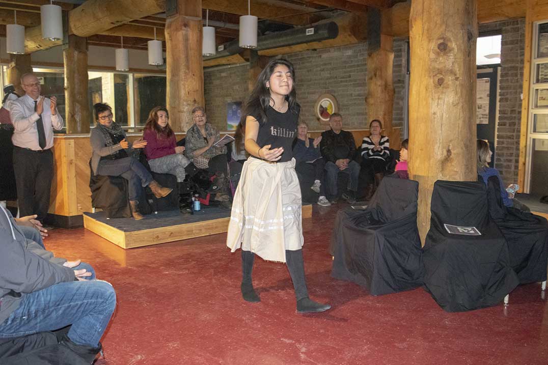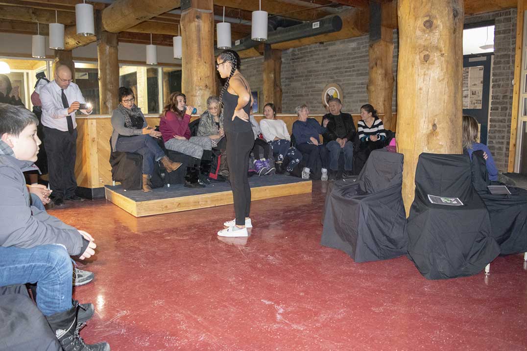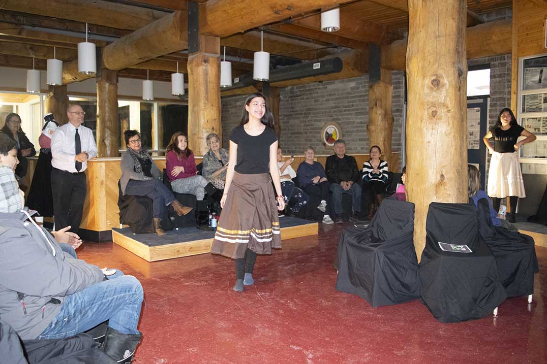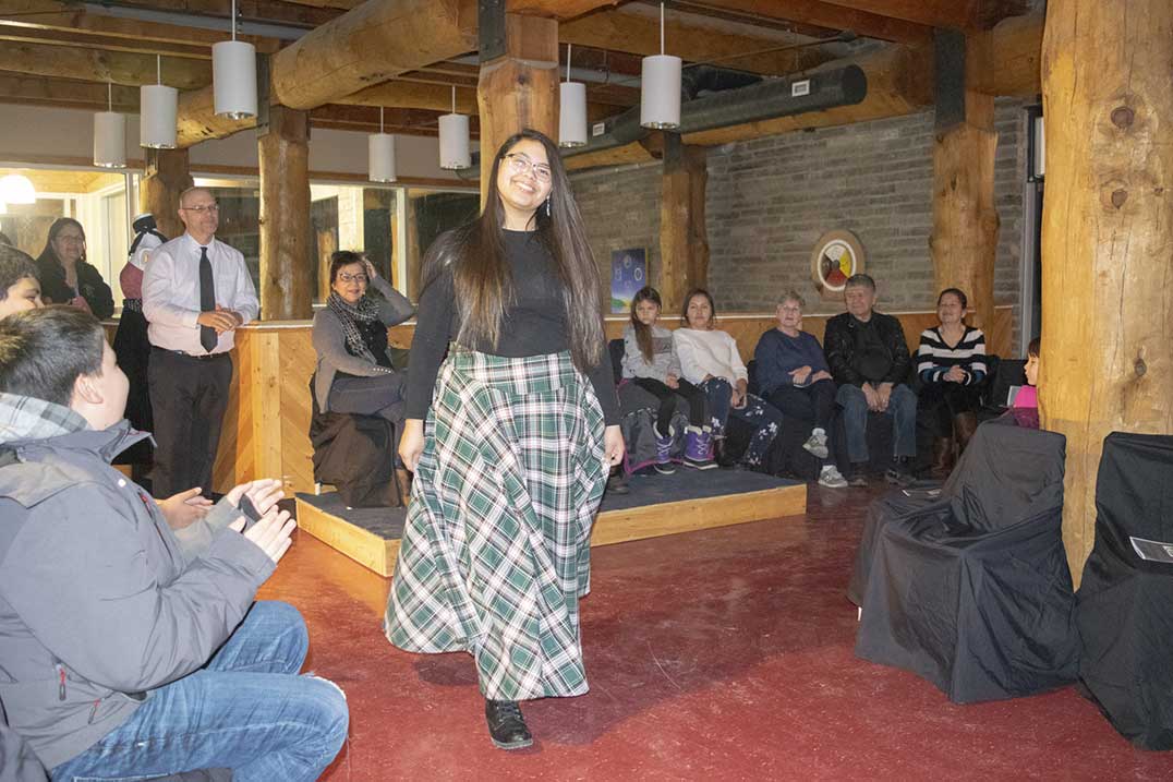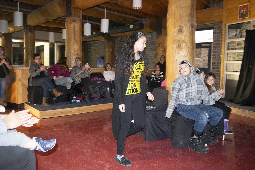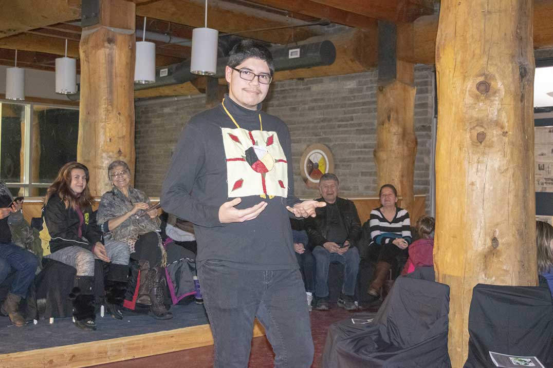 WIIKWEMKOONG—Shimmering streamers hung from the dark-curtained doorway that led onto the small stage set up before the gathered crowd of eager family and friends. Music thumped through the upstairs halls of the Wikwemikong High School as participants made final touches to their outfits backstage. Soon, the music faded and student Ian Dokum gathered the attention of the room.