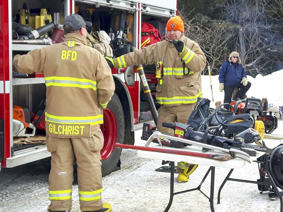A table in front of the Billings Fire Department truck displayed lifesaving equipment. The knowledgeable and enthusiastic Martin Connell and Merv Gilchrist were on hand to explain the gear and how it was used.