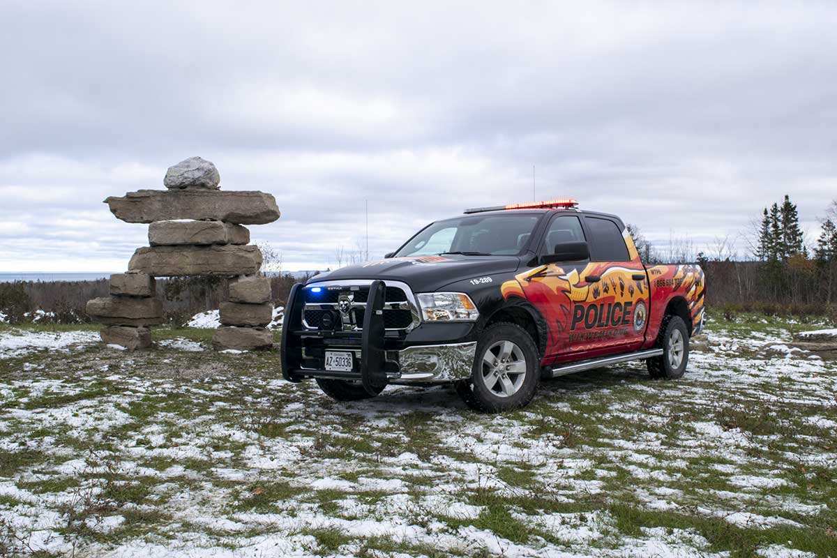 WIIKWEMKOONG – Wikwemikong Tribal Police Service (WTPS)’s community relations vehicle, which boasts a brilliant thunderbird graphic wrap on its exterior, has just been named by Blue Line Magazine as Canada’s 2020 best dressed police vehicle in the community relations category.